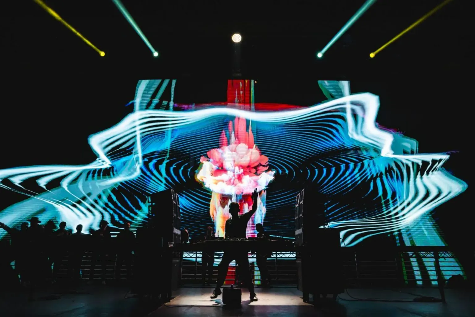 这意味着,音乐人不仅可将自己实时动态的 3D 人像输出至现场 LED 投影墙,360 度全角度投影映射整个演出场地,此外音乐人现场的身体动作、实时演奏的音乐动律以及现场的 LED 墙屏幕可三位一体实时互动。