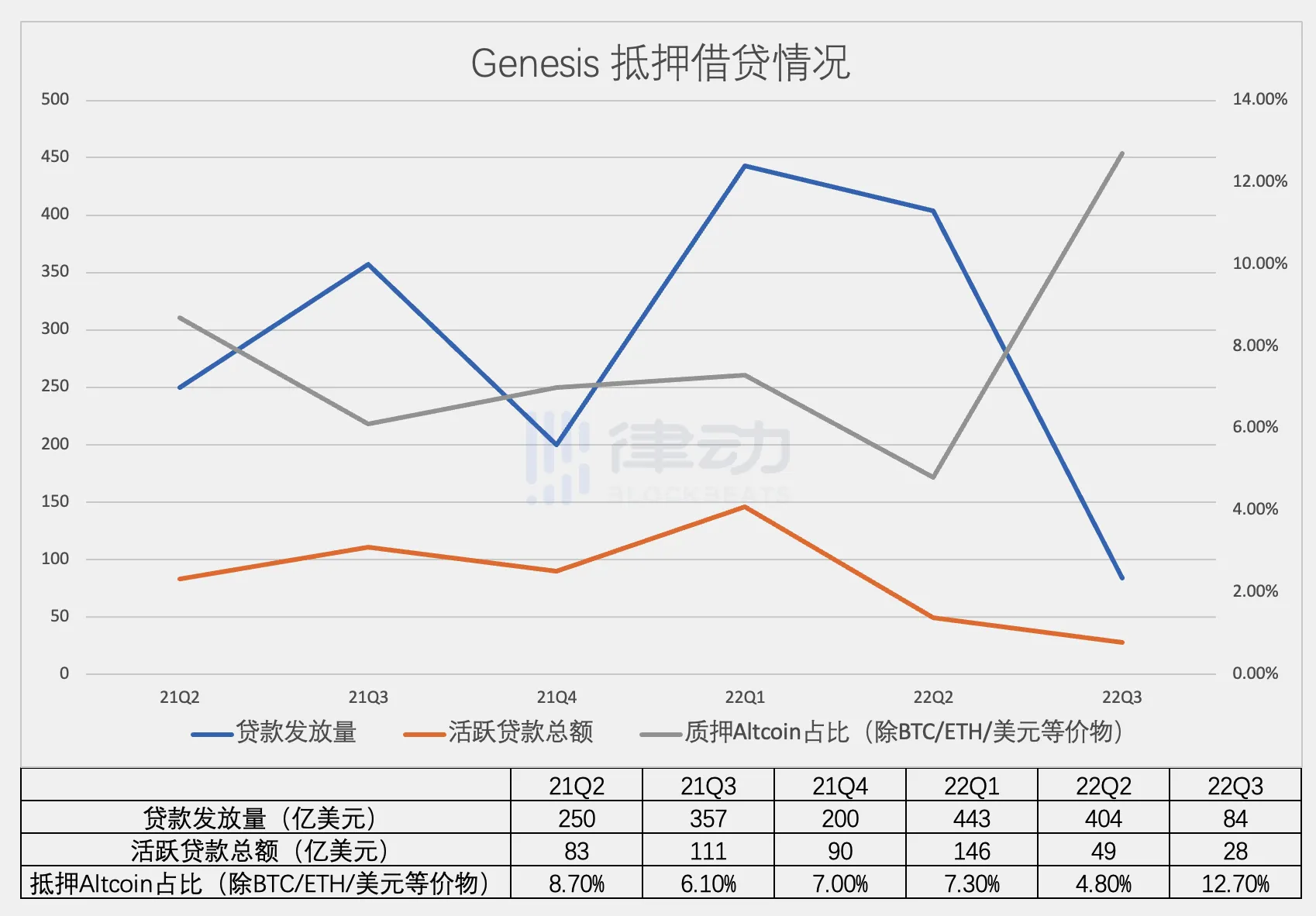 经历了三箭资本的流动性危机,再加上市场的单边下行,给 Genesis 带来了不小的影响,截止今年 Q3,Genesis 的在贷余额仅有 28 亿美元,比一年前的在贷规模小了超过 100 亿美元。我们会在下文用时间线列出自三箭资本暴雷后 Genesis 的相关举动。