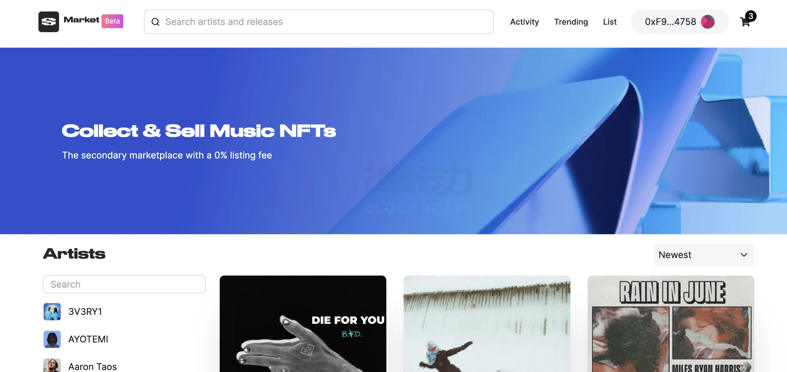 以音乐类 NFT 资产为例,一名音乐人可以创建一个自有的 NFT 垂直市场,只包含自己的音乐 NFT 作品,类似于 NFT 官方购买店铺,这里陈列着所有发行的个人音乐作品,这个音乐人的作品也可能出现在音乐类 NFT 垂直市场,这类市场中包含多名音乐人的作品。