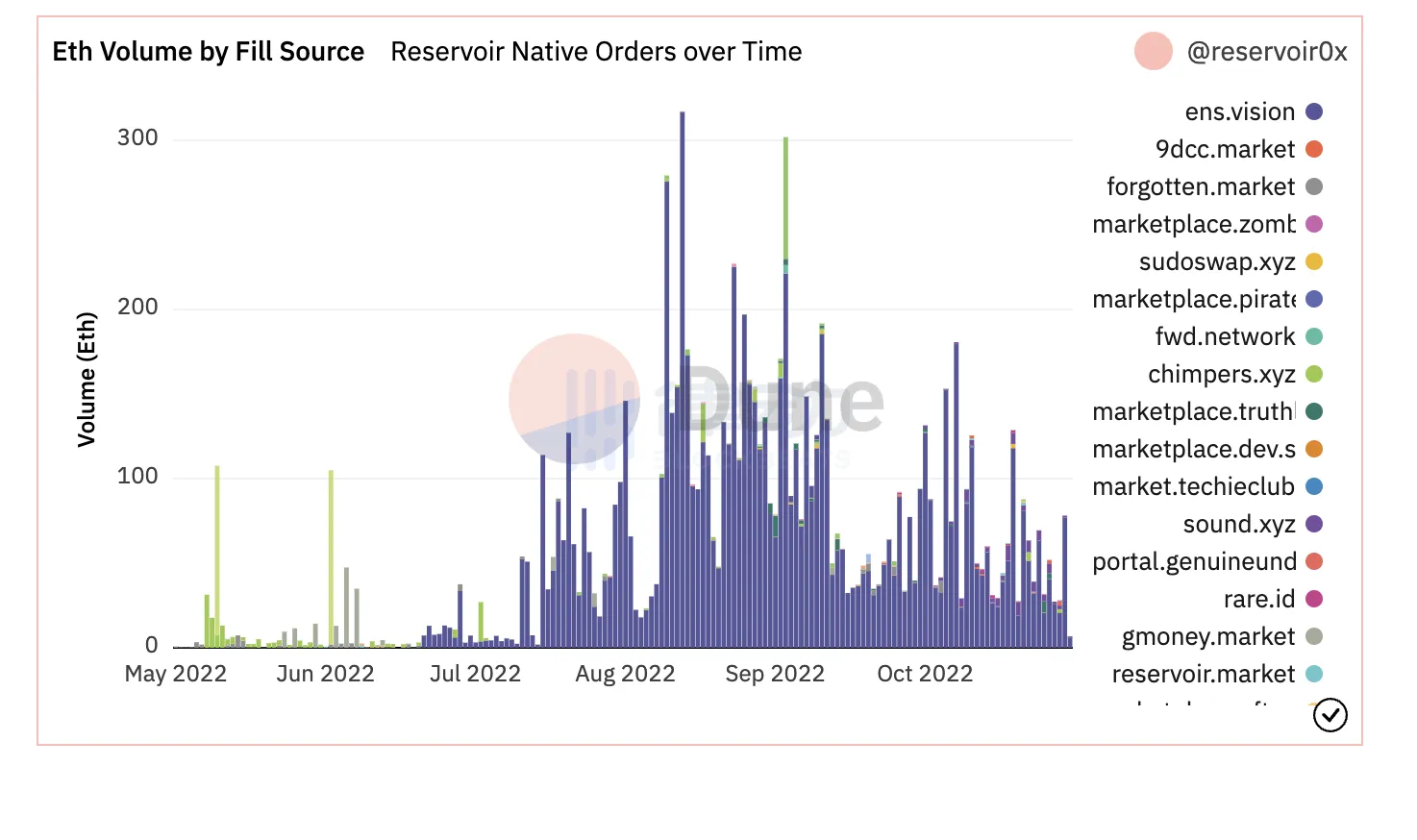 Reservoir 协议原生流动性的交易额占比,其中ens.vision位居首位