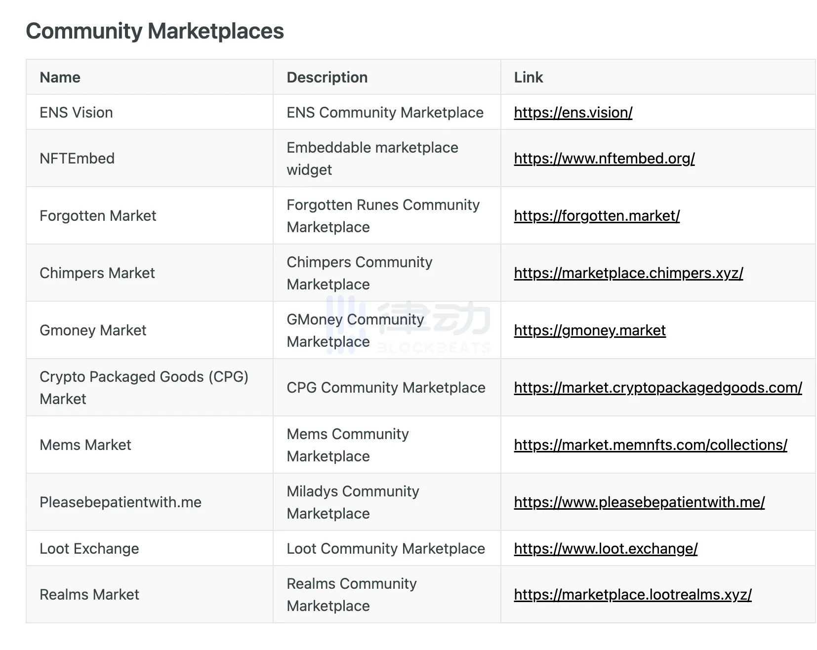 NFT 自有的交易市场可以为社区用户提供一层安全保障,这里提供官方确认的合法链接,保障用户的交易安全。