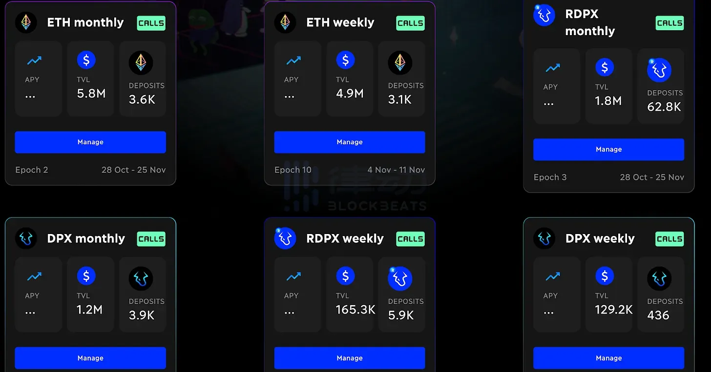 这种时间范围和执行价格的差异极大地分散了单一资产期权之间的流动性,如下图 Dopex 的 DApp 页面