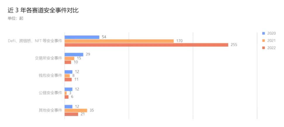 其中各生态 DeFi、跨链桥、NFT 等安全事件 255 起,交易平台安全事件 10 起,公链安全事件 11 起,钱包安全事件 6 起,其他类型安全事件 21 起。