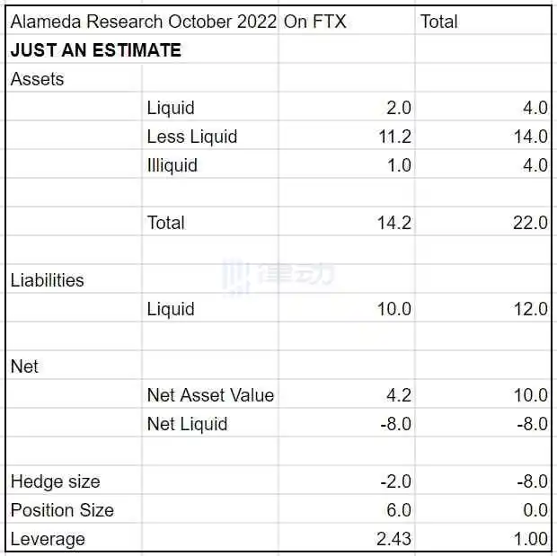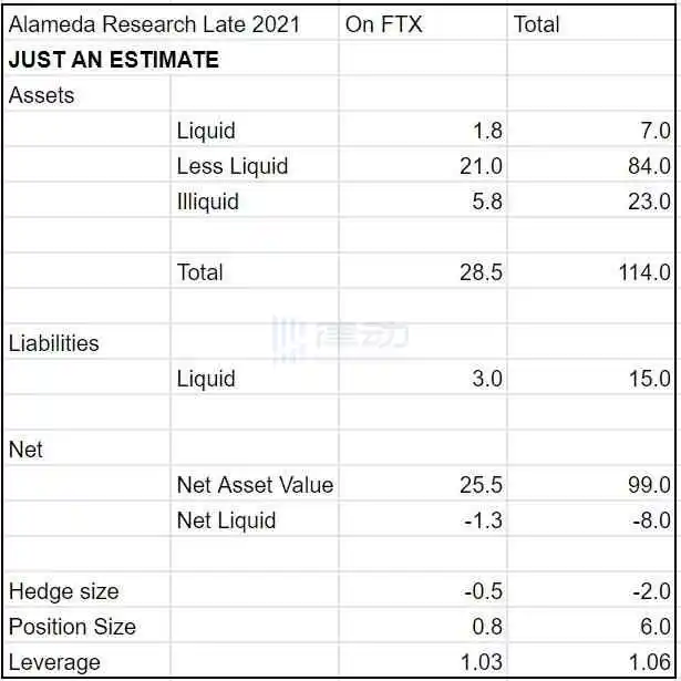 因此,到 2022 年年初,我相信 Alameda 的资产负债表看起来大致如下。