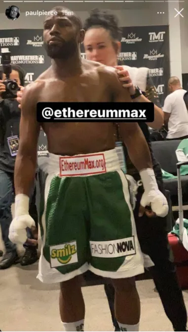 2021 年 6 月,梅威瑟与 Logan Paul 进行了一场拳击表演赛,梅威瑟在比赛中身着印有 EMAX 字样的拳击短裤。可用 EMAX 购买这场比赛的门票,且前排座位的票仅能用 EMAX 购买。买入超过 5000 美元的 EMAX,还会得到梅威瑟亲笔签名的拳击手套。梅威瑟没有直接的喊单推销行为,让 SEC 无从下手。