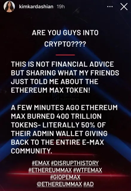 金·卡戴珊同样因为喊单 EMAX 而受到了 SEC 的指控,不过要早了几个月。2022 年 10 月 3 日 SEC 正式宣布对她提出指控,罪名与皮尔斯一字不差。