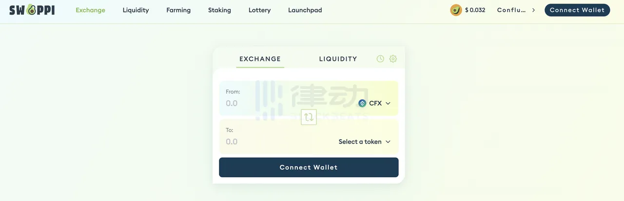 Swappi 是 Conflux eSpace 上最主流的去中心化交易平台,其定位相当于 BNB Chain 生态中的 PancakeSwap,主要功能包括 Swap、流动性挖矿、质押以及 Launchpad 等。目前 Swap 功能仅支持包括 BNB、ETH、WBTC 等主流 Token,以及 Conflux 生态项目 Token 在内的 17 种资产。