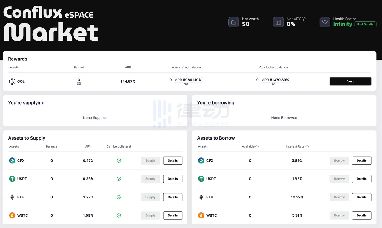 Flux Protocol 是具有低交易费用和跨链互操作性的借贷协议,由 ZeroOne Universe 开发。Flux 提供了一种借贷机制,以自动和去中心化的方式调整加密资产的利率,激励加密货币市场的流动性。Flux 除了支持 Conflux Network 的原生 Token CFX 之外,还支持符合ERC-777标准的资产。