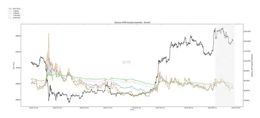 伴随着价格的回调,期权隐含波动率也随之下降,当前较短期的波动率已有轻微上涨信号。
