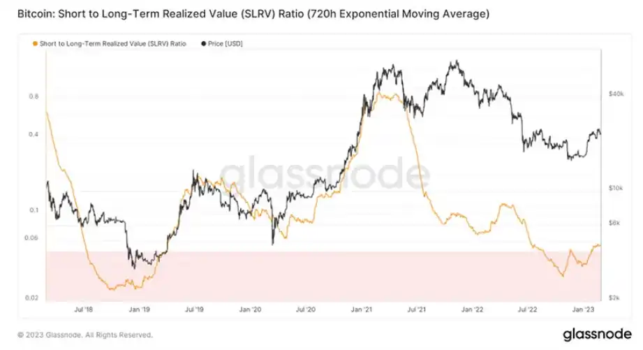 短期持有者额供应量有轻度的抬升,可能他们在逐步地参与市场,这或许会是一个较好的开始。历次市场修复的关键都是短期力量的注入,因为当前加密货币仍无法摆脱投机属性,因此了解短期资金的参与深度有助于我们观察中期结构。