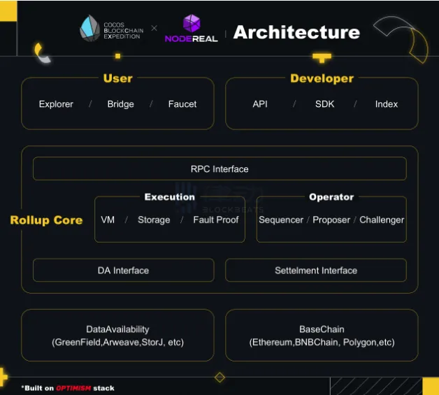 Cocos-BCX 合作构建的 L2,便是一个兼顾 BNB Chain 与 Optimism 优势的存在,它建立在开源的 OP Stack 之上,拥有安全、低成本、开发者友好等优势,旨在成为一个专注于游戏领域的平台,并以此为基点构建开放互通的「超级链」,为 Web3 带来下一个十亿用户。