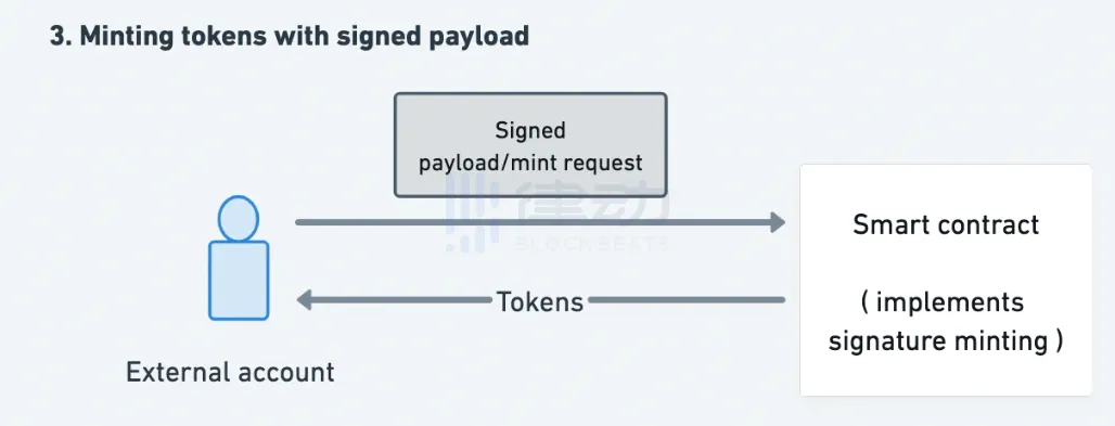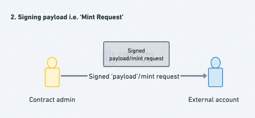 3、出版商随后授予特定钱包的签名,以铸造具有其合同中指定属性的代币。基于签名的铸造最终允许管理员钱包生成签名,使其他用户就可以在该智能合约上铸造 token。