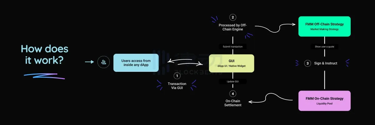 使用 Native 的技术时,价格计算发生在链下,但监管和交易发生在链上。用户或项目方可以选择「Uniswap v2」定价模型,也可以从其他多种定价模型中进行选择,包括固定价格、恒定总和或甚至使用链下价格源。链下定价的工作方式类似于 1inch 和 0x,使用做市商来提高账本深度。用户可以获得最佳价格,无论是来自做市商的链下价格馈送,还是使用链上定价的 AMM。