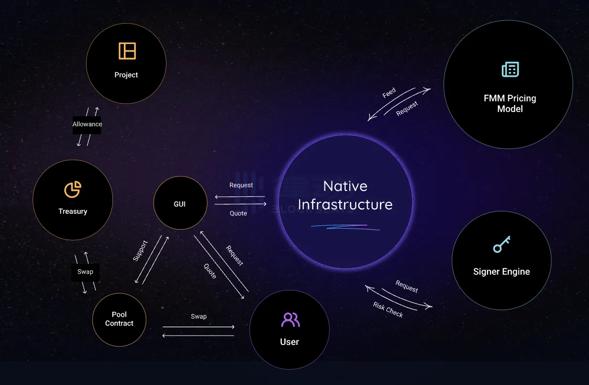 不少人认为,目前的加密生态系统过分依赖于交易所,用户依靠中心化交易所作为中介来完成交易,而不是直接与去中心化应用程序和流动性提供者交互。这制约了生态系统扩展的能力,也限制了项目和社区之间交互和增长的能力。在这样的背景下,Native 希望消除第三方的交易费用,让每个项目都拥有自己的 DEX。