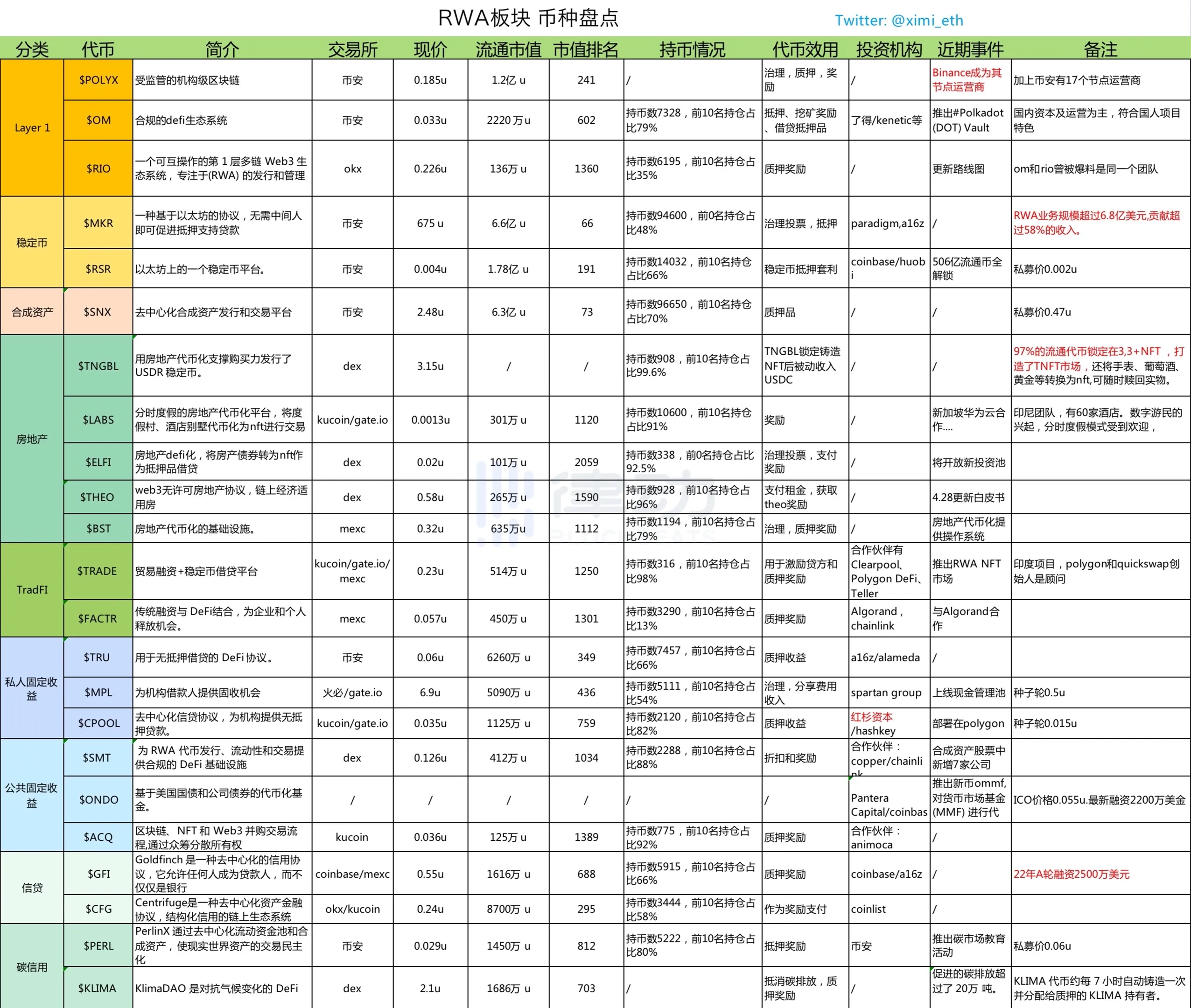 在大致了解几十个 RWA 项目后,笔者得出的结论是:目前市场上的 RWA 项目大多乏善可陈,从产品角度,暂时没有看到特别眼前一亮的创新项目。但这不妨碍长线关注和看好此赛道,以及如果有资金愿意炒作,拉盘便是正义。