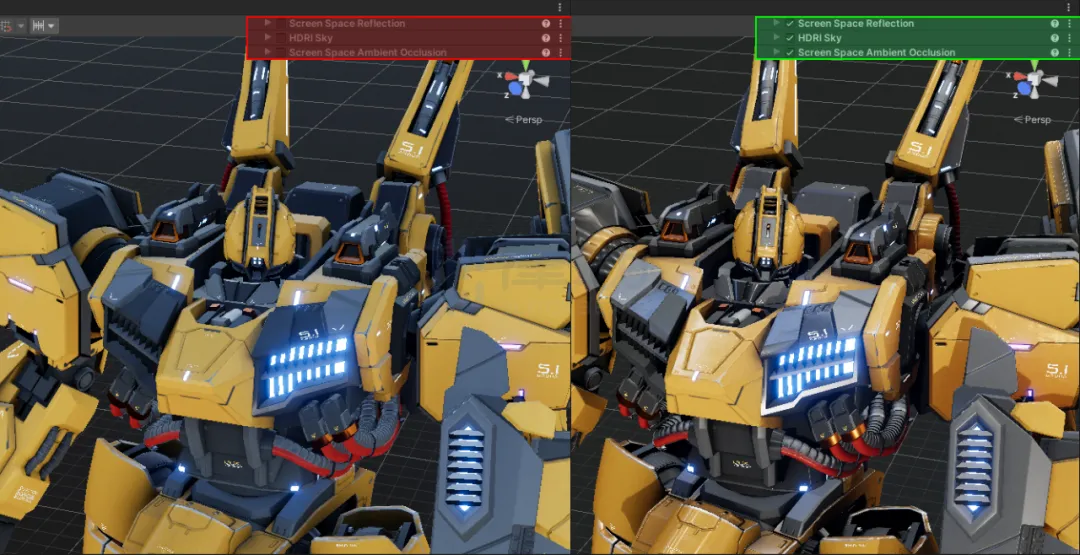 HDRP 支持更丰富的视觉特效和后期处理效果,这使得画面效果更加绚丽。例如,屏幕空间反射 (Screen Space Reflection,SSR) 和体积雾 (Volumetric Fog) 等效果可以赋予画面更丰富的立体感和层次感。