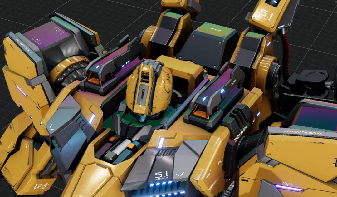 在《Fusionist》项目中,每个 layer 分别控制着一种材质效果和颜色变化。然后通过增加材质球的数量,把机甲外观的丰富度可以无限扩充。