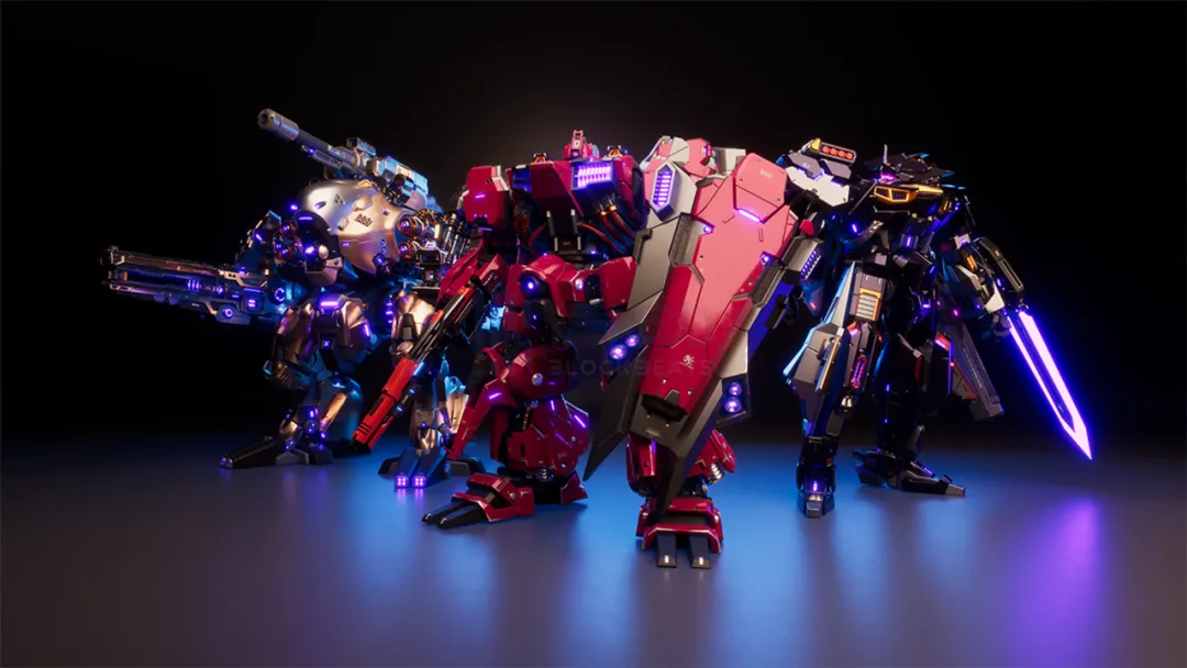 基于上述材质参数,调制出了一系列相当出彩的材质样本使机甲多样化。