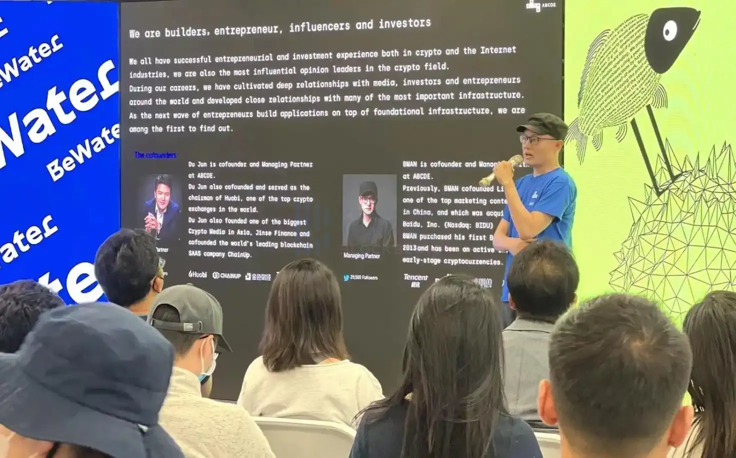 会议现场,以太坊核心开发者 Austin Griffith、Scroll 联合创始人张烨还有 Octopus Network 创始人刘毅等重量级嘉宾都发表了精彩演讲。BeWater 社区发起人 BMAN 则分享了创建这个区块链开发者社区的初衷,他希望建立一个不焦虑、开放、利他、追求本质的社区。BeWater 秉承着「上善若水,水善利万物而不争」的精神,成为支持 Builder 的力量,为每个开发者带来创新和成就。为支持 Builder,BMAN 与火币联合创始人杜均共同创立了专注于投资 Web3 Builder 的基金 ABCDE,规模达 4 亿美元。