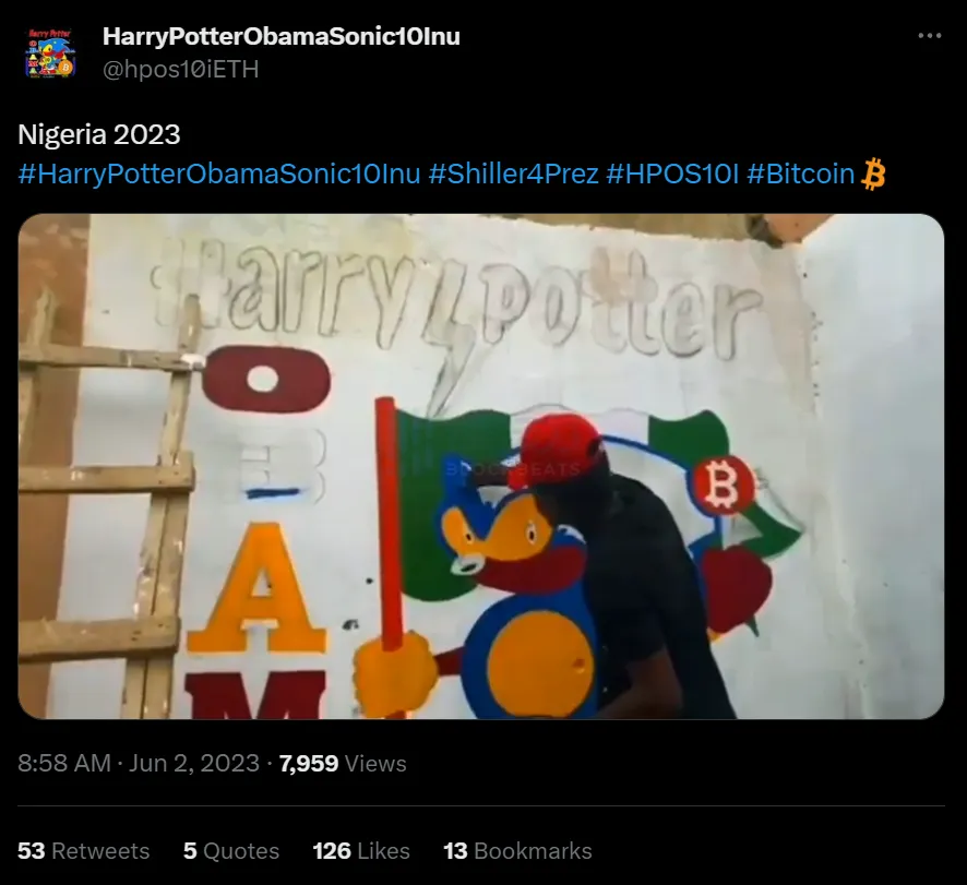 回到官推,拓展非洲市场,项目方在行动,花重金让尼日利亚老哥在房子里搞了个墙绘。