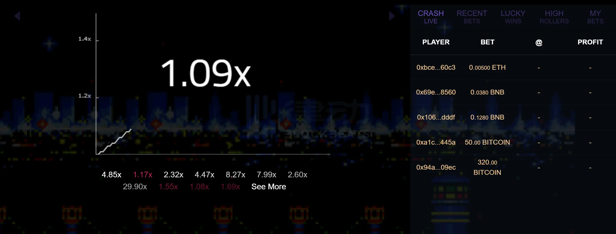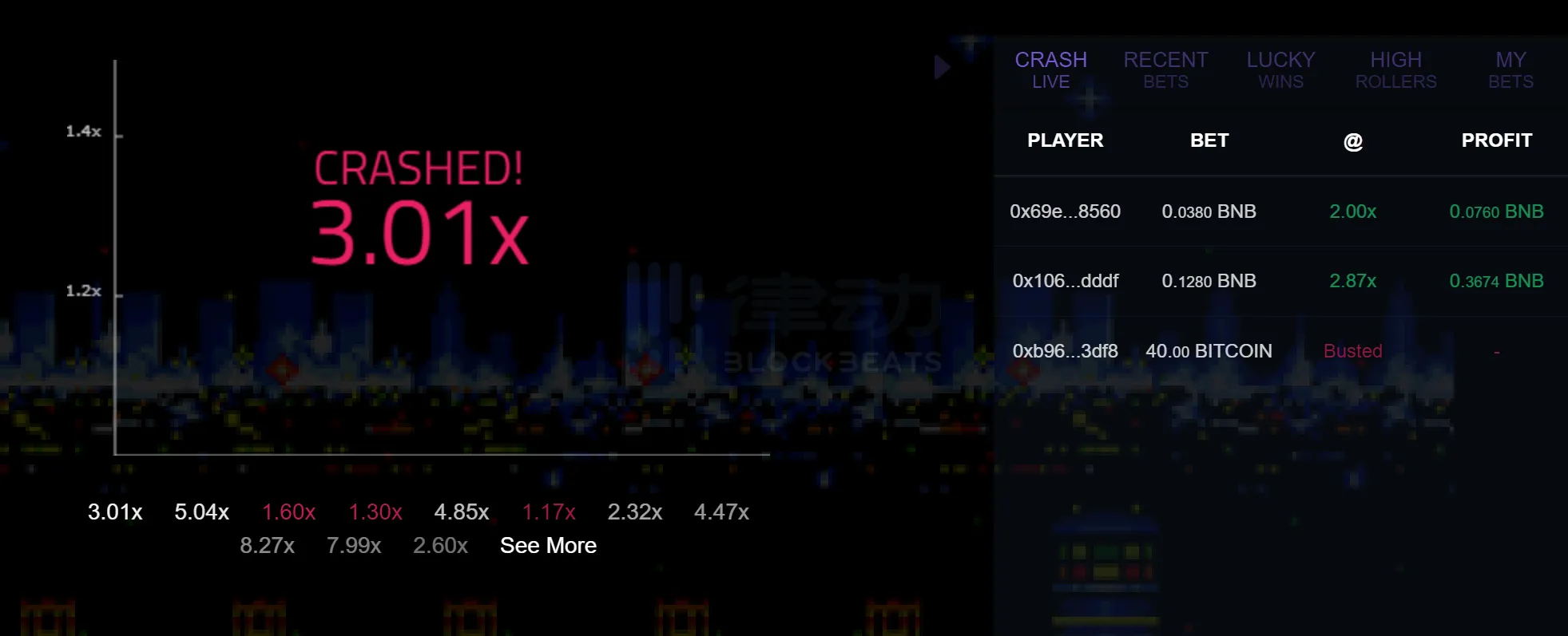这个倍数会不断上升,但随时都会归零,玩家必须在倍数归零前兑现利润,不然白给咯