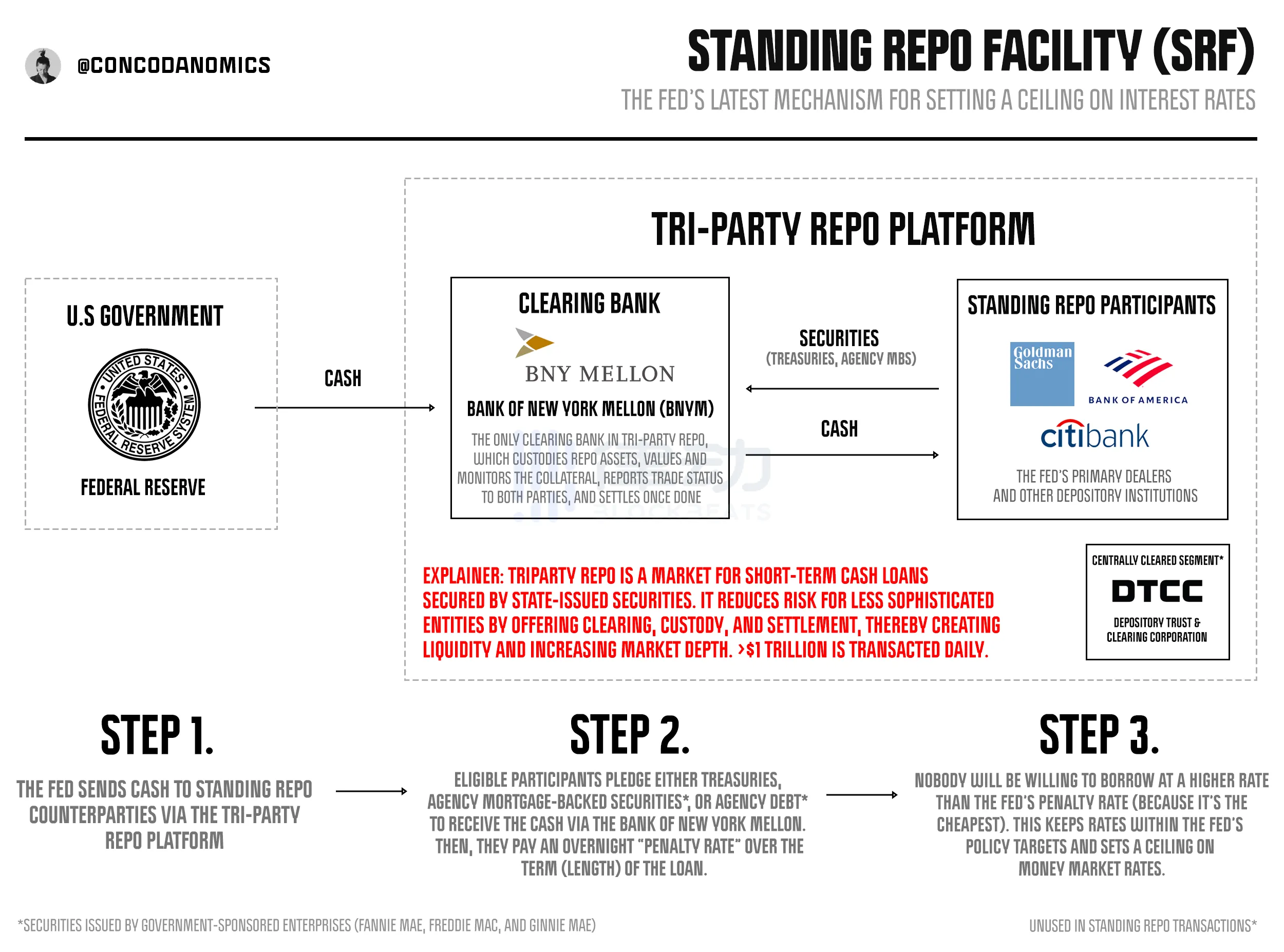 由于只有某些实体可以使用 RRP(即主要交易商、政府支持的企业如房利美和最主要的货币市场基金),所有其他实体必须接受较低的利率,以大幅折扣向已经充满资金的交易商提供贷款。