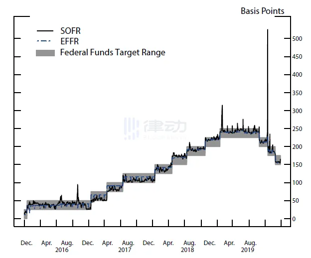 2019 年 9 月,「回购市场危机」(repocalypse)出现在我们的视线中。货币市场利率甚至美联储基金利率(美联储的关键政策利率)都飙升至目标范围之上。美联储的回应标志着从「过剩抵押品」向「过剩现金」制度的转变开始。
