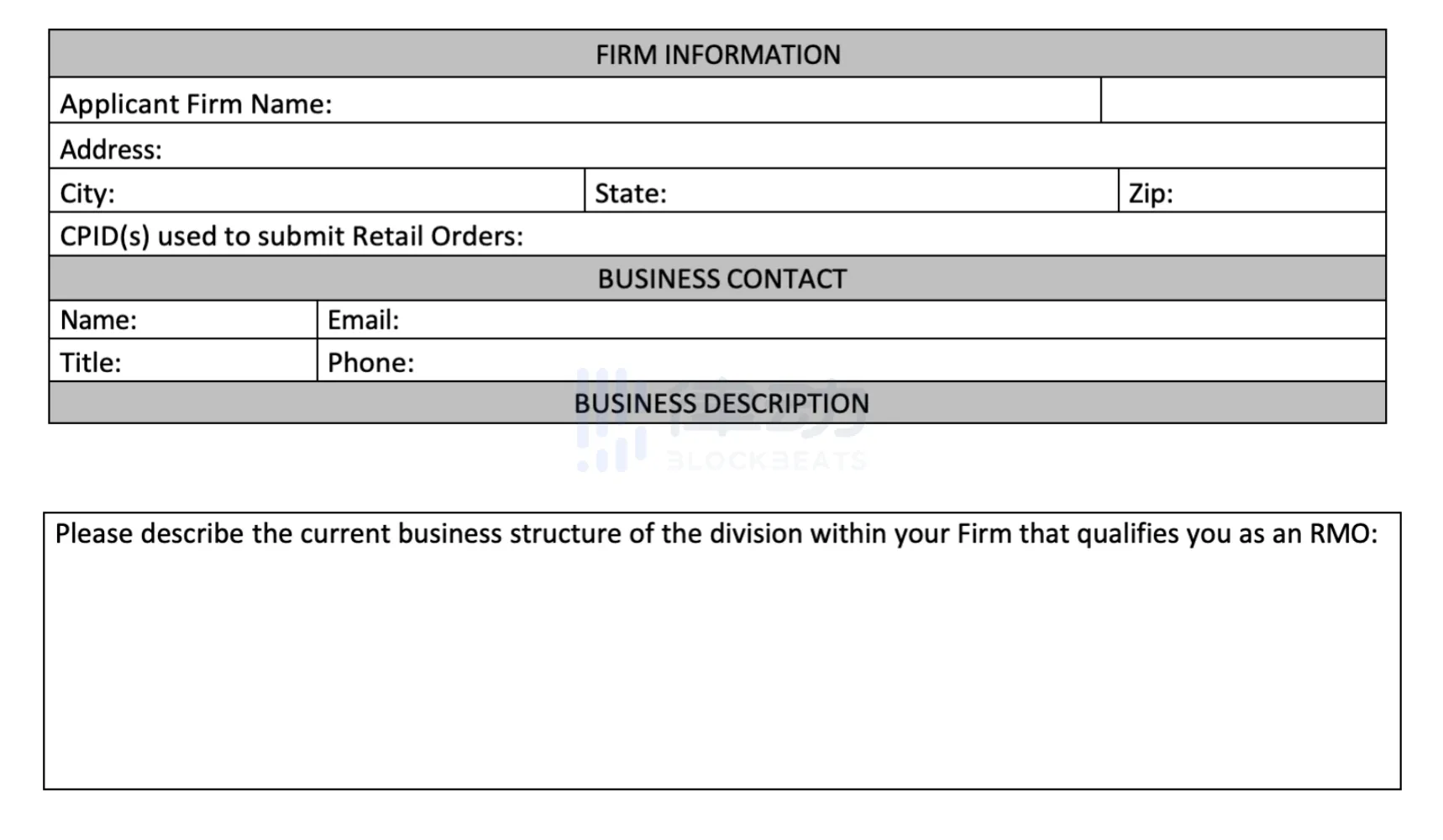 想要获得 EDX 散户组织成员(Retail Member Organization)资格并进行交易,需要完成该申请。「散户订单」是指来源于个人需求并由 RMO 提交给 EDX Markets 的订单,前提是订单的条款在价格或市场方面没有变化,并且订单不是来源于交易算法或任何其他计算机化方法,除了 RMO 可以使用算法来促进将订单路由到交易所(「智能订单路由器」)。就本申请而言,术语「个人」是指根据人类提出的请求产生订单,而不是通过计算机算法产生的订单。