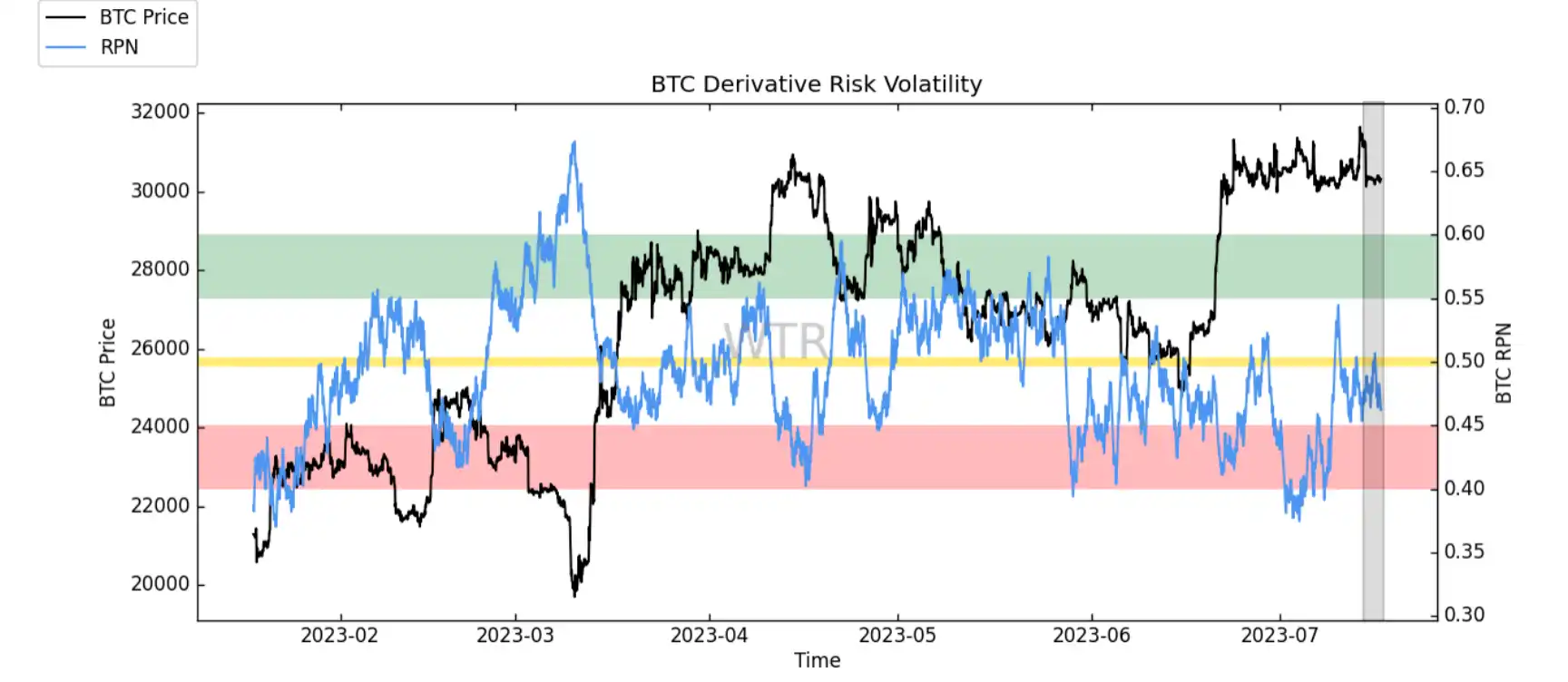价格在短暂的拉升又回调后,风险系数仍处于中性区域,表明当前衍生品风险适中。