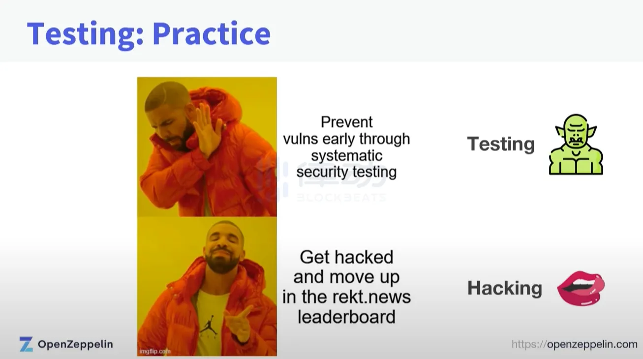 这一原则适用于任何软件系统。因此,在理论上,每个人都应尽可能做好测试,因为经济学原理明确告诉我们这将带来回报。但是在实践中,测试并不是一件充满魅力的事情。测试并不「酷」。没有人会说,「我对 QA 测试真的很热衷,我是一个测试人员」。所有「酷」的事情基本上都与黑客有关。当然,对于您的协议来说,被黑客攻击是一件坏事。但黑客很「酷」,而测试则是必须做的、却不受欢迎的任务。