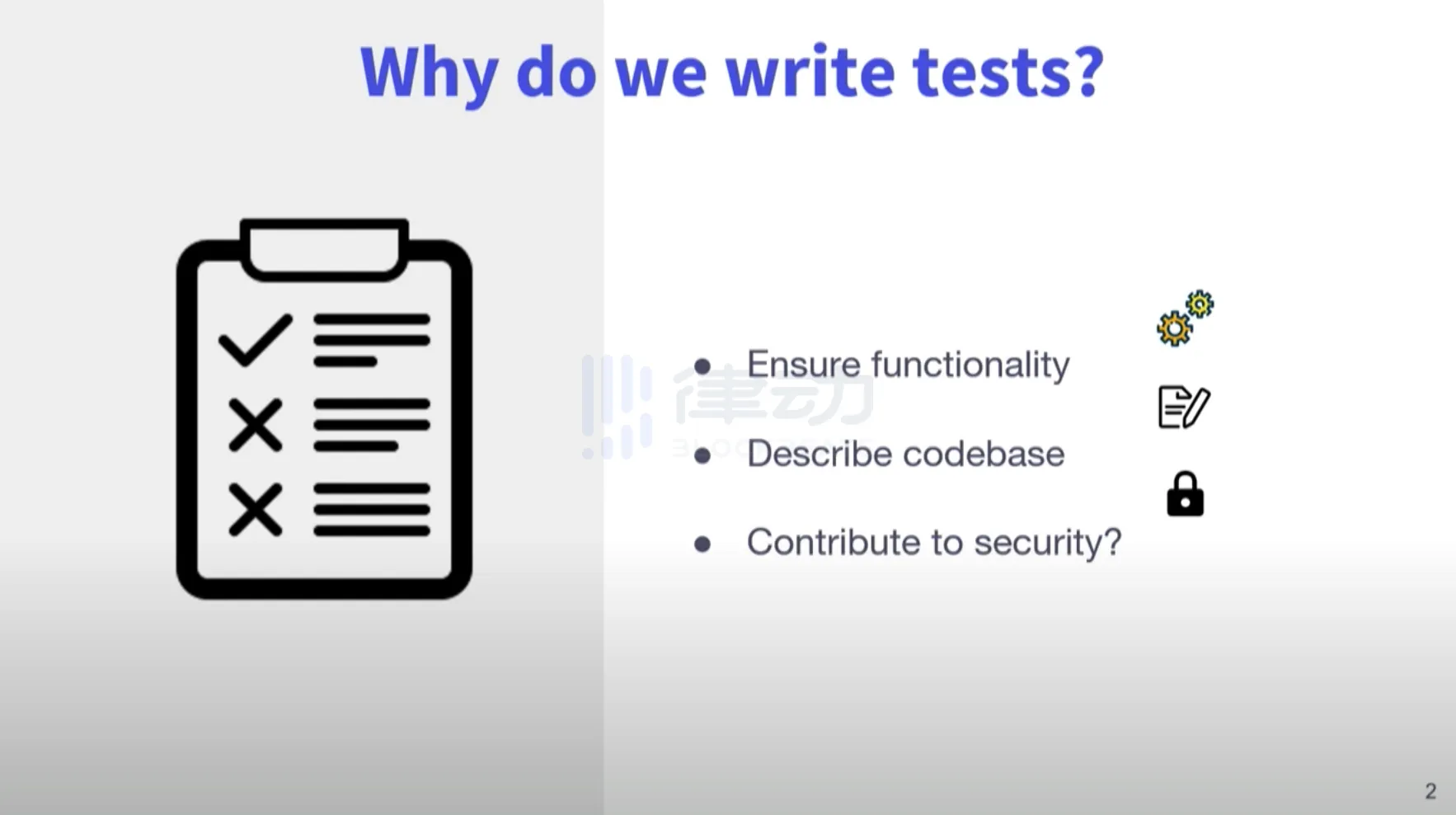 这是当前摆在我们面前的一个重要问题:如果我们实现了 100% 的测试覆盖率,那么我们是否真正获得了安全性?如果获得了,那么是有限的安全性还是大量的安全性?我将在今天的演讲中尝试回答这个问题。然而在深入讨论这个问题之前,不如让我们先退一步,回答我们为什么要进行测试?