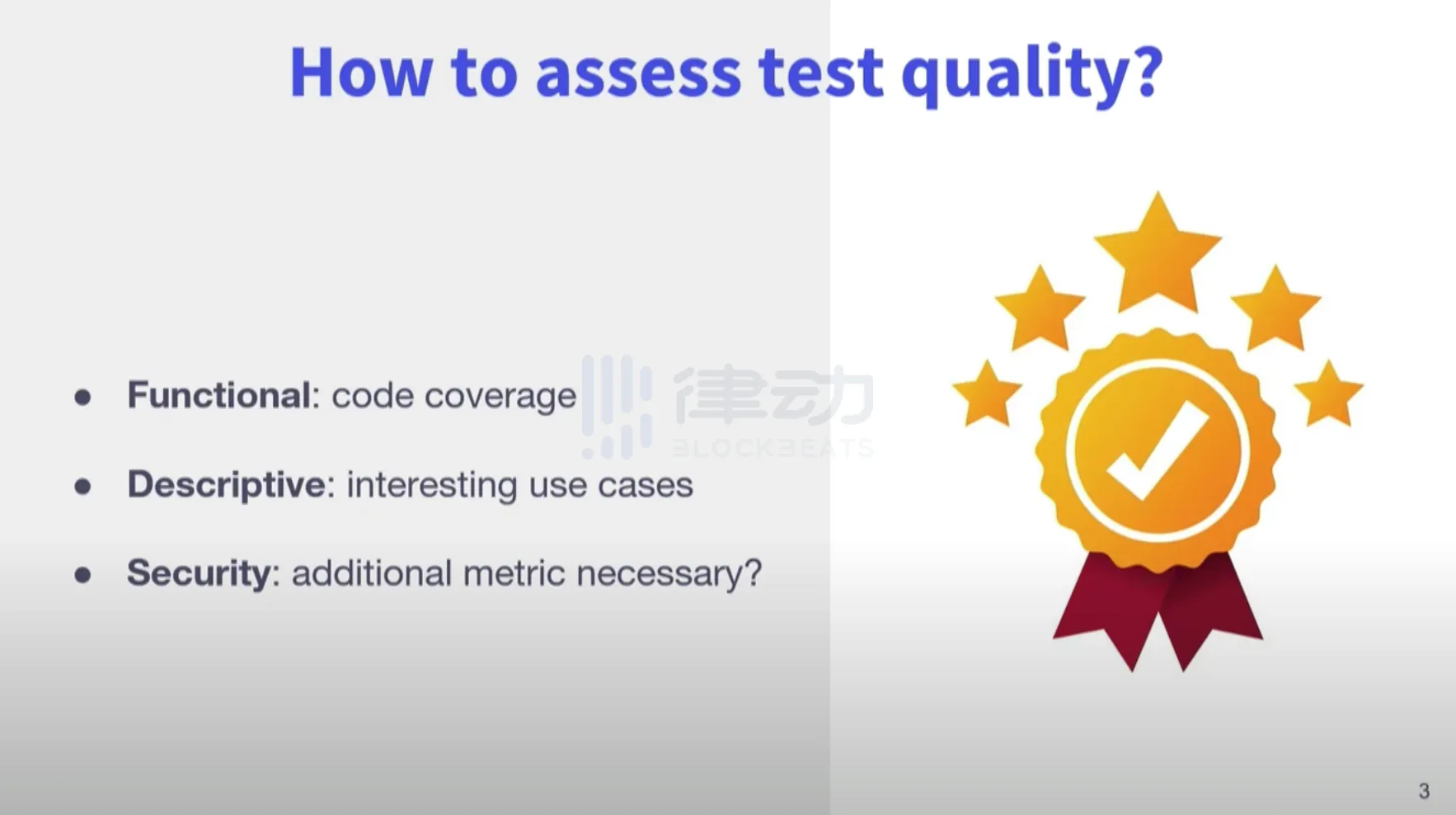我们希望它能够增强安全性。然而,对于这个问题,我们在当前这张幻灯片上还无法得出答案。因此,让我们先继续探讨,稍后再返回这个问题。现在,我们来谈谈测试的质量。随着时间的推移,您可能希望完成测试。因此,我们有各种不同的质量指标。