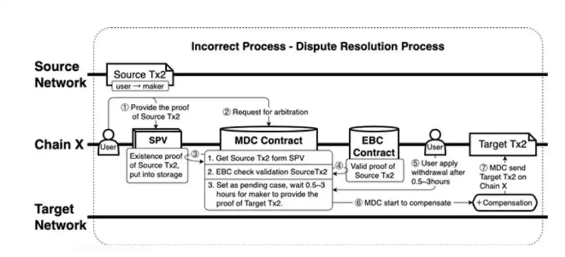 反之 Maker 无法在规定时间内提供相关的目标网络上交易,Sender 可触发 MDC 合约作出仲裁。