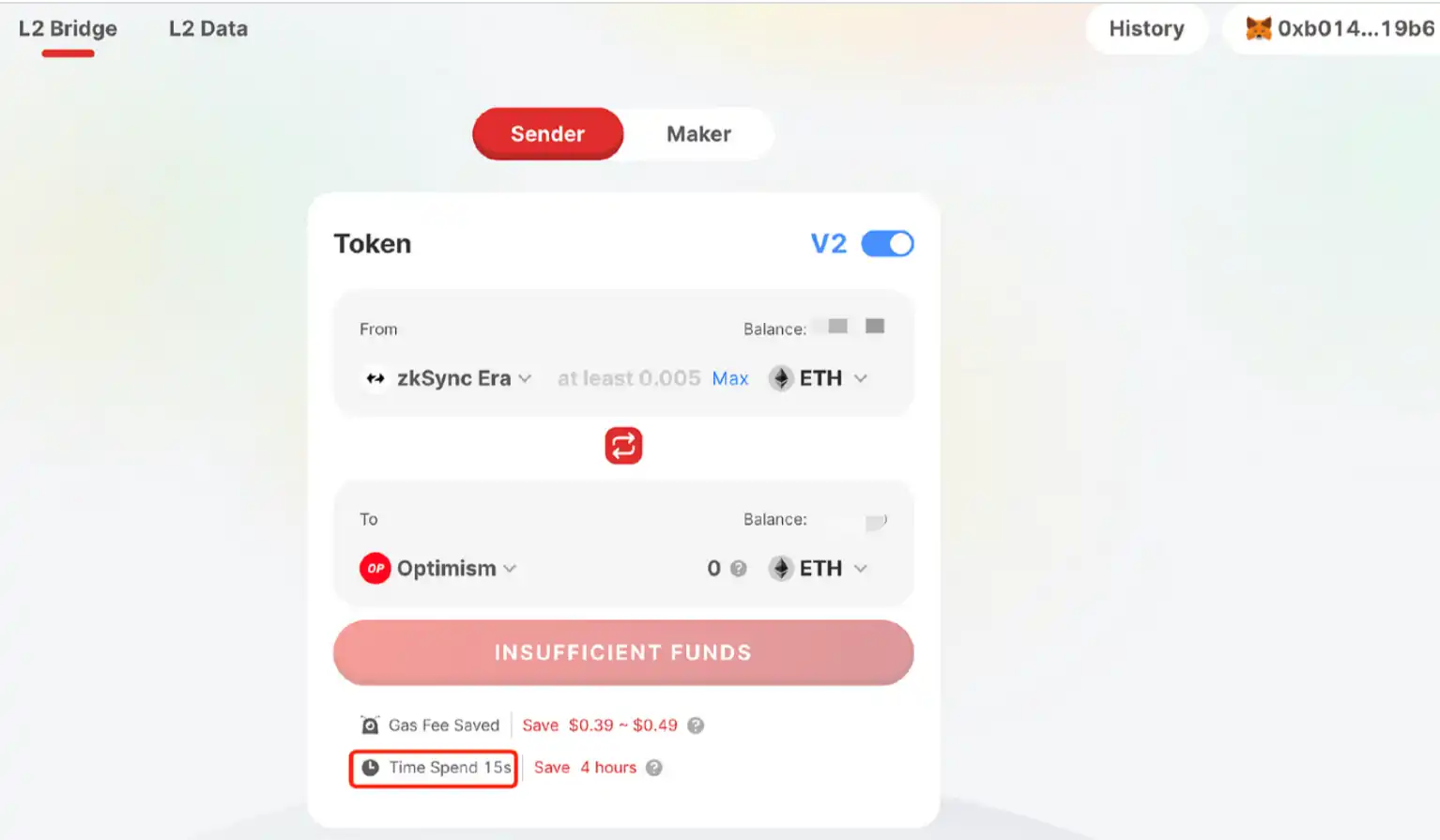 在这个过程中,发生的两次代币转移,都是在以太坊的 Layer2 网络上,而 Layer2 网络的转账费用非常低,速度也更快。