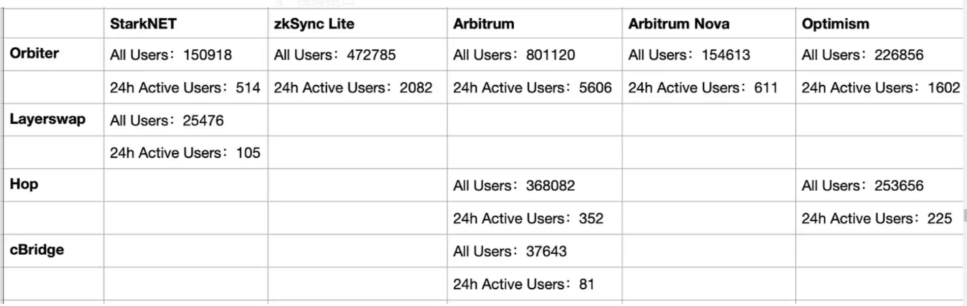 可以通过 https://www.orbiter.finance/data 查看一些跨链桥的活跃用户。