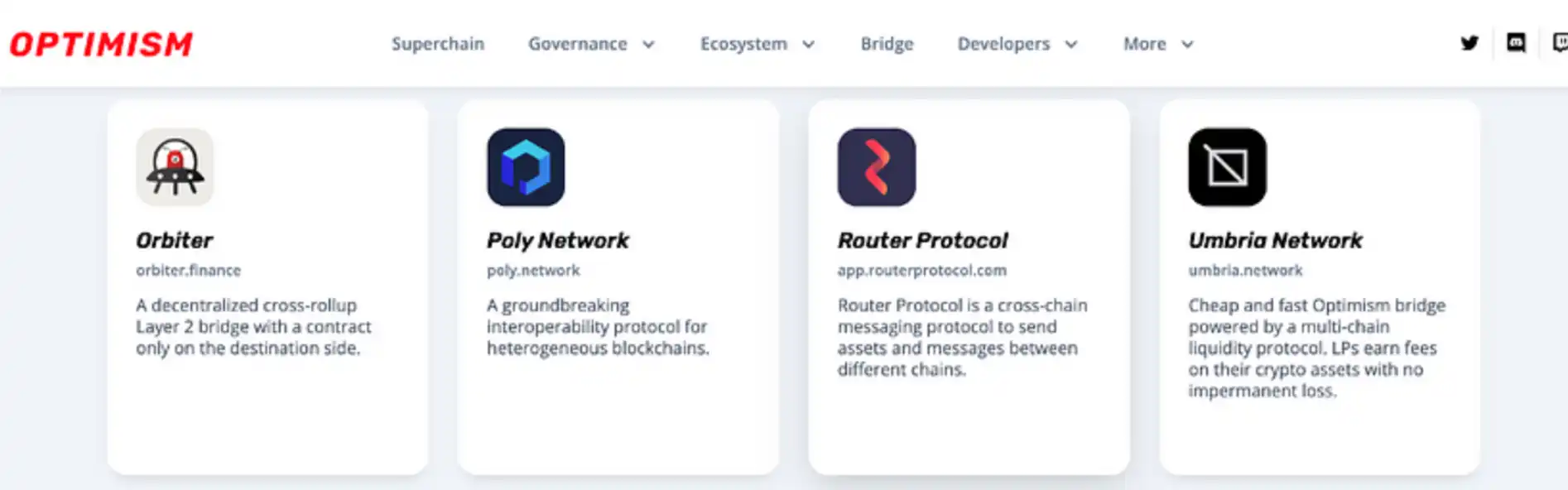 Optimism 也在生态的跨链桥细分项目里边推荐了 Orbiter 跨链桥。