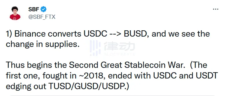 FTX 首席执行官 Sam Bankman-Fried(SBF)认为,Paxos 获得发行稳定币许可的 2018 年,见证了五种稳定币之间发生的「第一次稳定币战争」,在这场竞争中,USDT 和 USDC 胜出,而 TUSD、GUSD 以及 USDP 则相继退出战场。