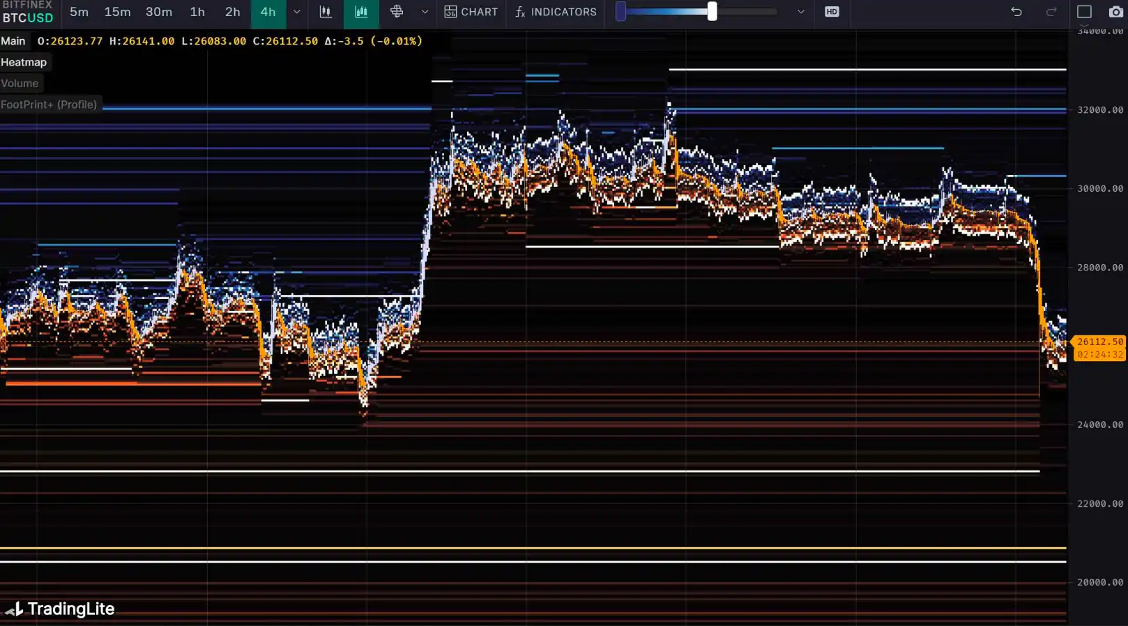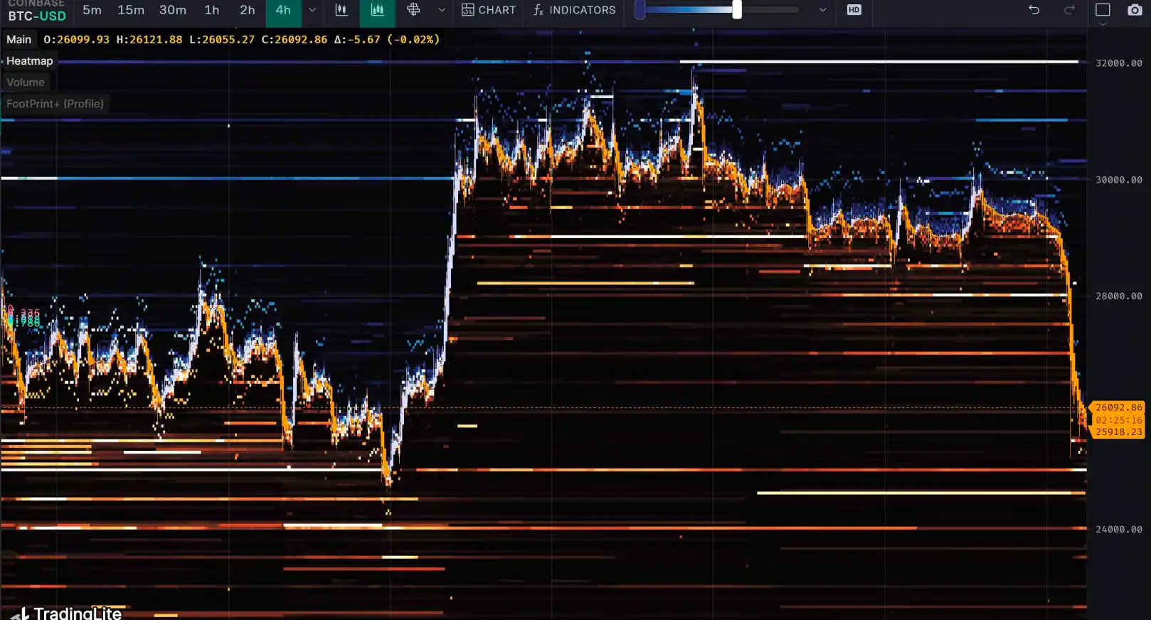 观察筹码分布图,在约 26000 附近有⼤量筹码成交,将有⼀定的⽀撑或压⼒。