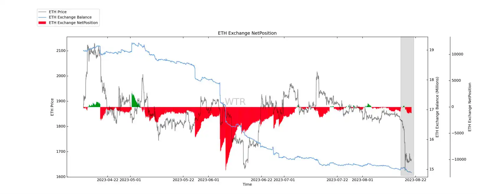 E 太交易所净头⼨呈流出累积状态,表明交易所内抛压较低。