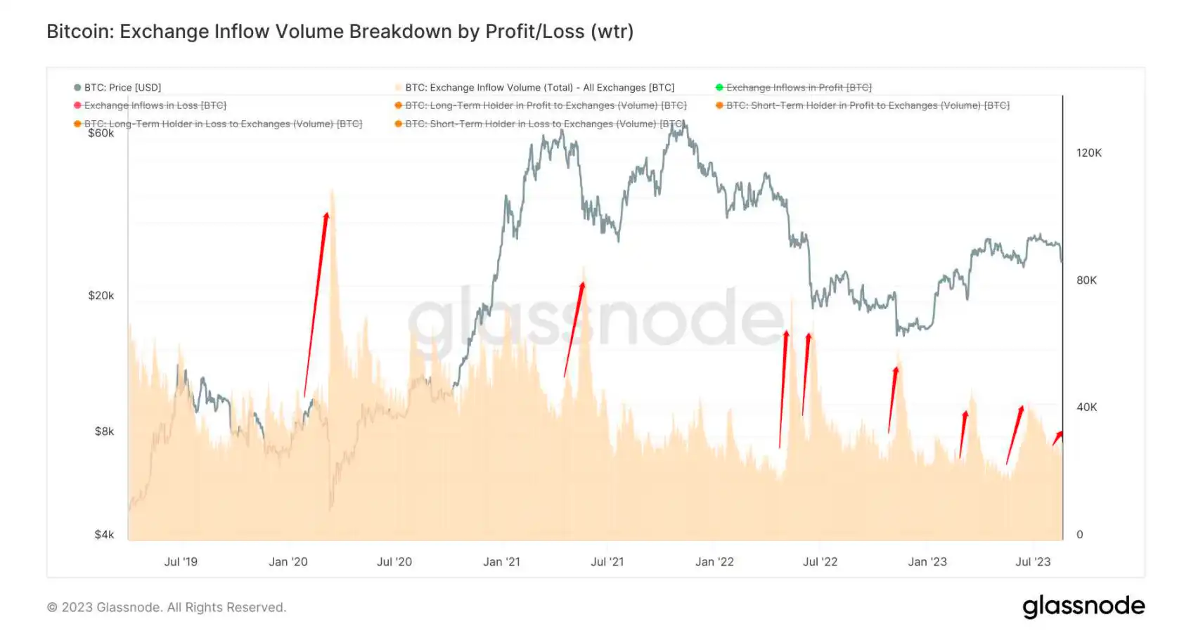 上周亏损转移量开始持续攀升,同时 29K 附近价位的筹码开始转移,价格也开始下跌。当前亏损转移量