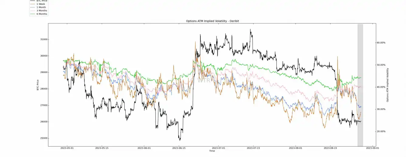 期权隐含波动率在短暂的⼤幅波动后,当前⼜回落⾄相对较低的位置⽔平。