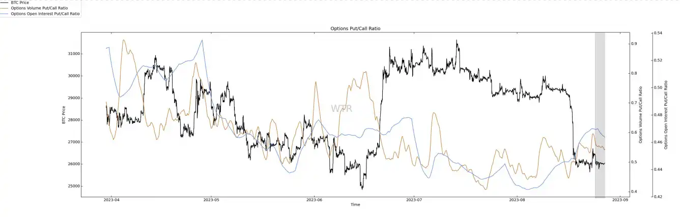 在价格下跌后看跌期权⽐例有少量增加,当前略有有下降,⽐例处于中等⽔平。