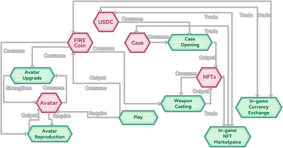 开启「饰品箱」,饰品交易需求逐步提升,更多「饰品箱」被开启...$FIRE 虽然没有供应量上限,但游戏性支撑的真实消费需求将维持 $FIRE 的高消耗,从而脱离旁氏,在健康且真实的供需关系中提升价值。