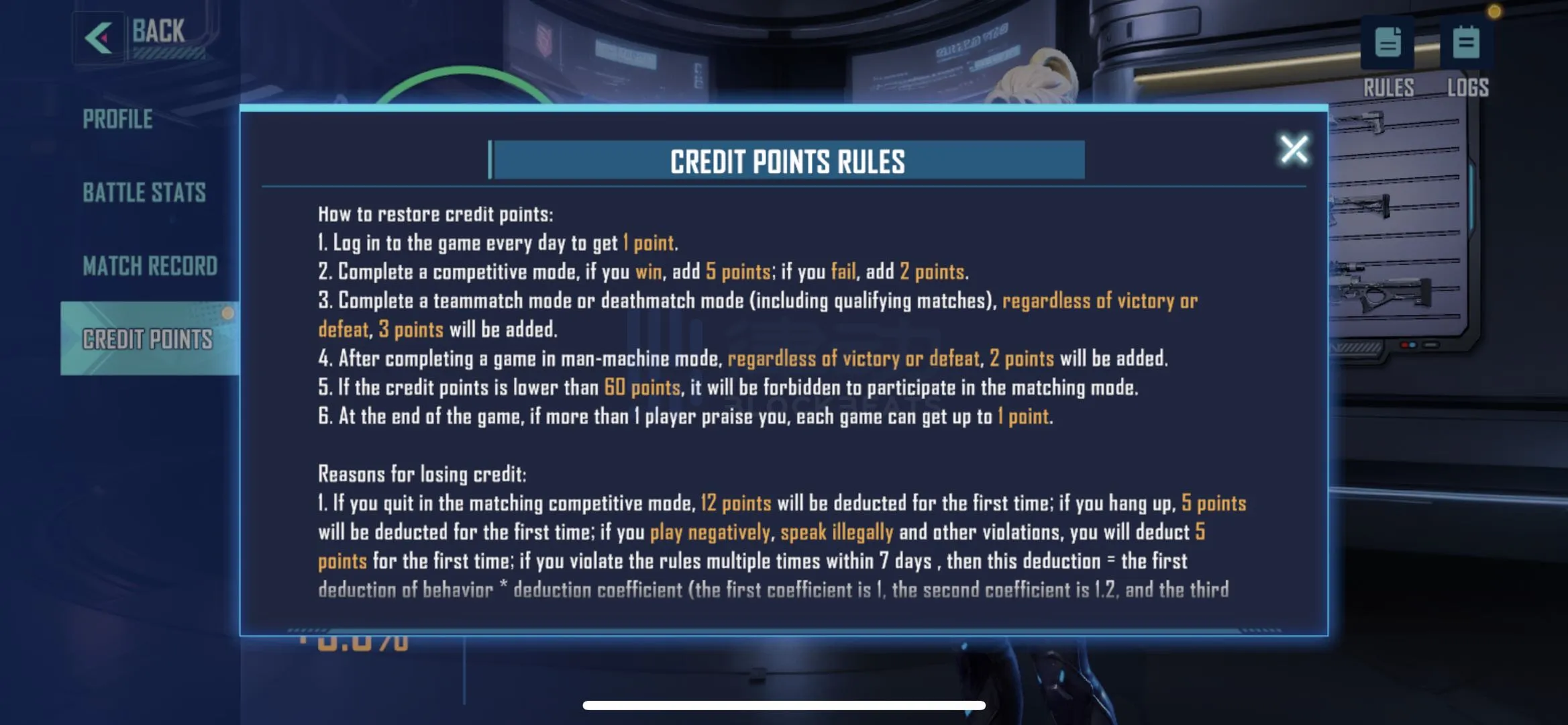 信誉分系统。每个游戏都会有一些捣蛋鬼,他们或是挂机/伤害队友来消极游戏,或是利用 BUG 甚至作弊,在 Matr1x FIRE 中有一个很成熟的信誉分系统帮助绿色玩家们维护公平公正的游戏环境。在我的游玩经历中,有 2 次让我感受到信誉分系统严格而又良好地运作着。一次是我遇到了一名喜欢在出生点丢「燃烧弹」伤害队友的玩家,我气到爆炸还击,然后我也受到了「消极游戏」处罚而损失了一定的信誉分。虽然我感到很无辜,但是信誉分系统确实在发挥作用,这让我还是很开心的。另一次是我在游玩的过程中有急事需要处理而 AFK 最后导致我的队伍输掉了比赛,受到了「挂机」处罚,心服口服。