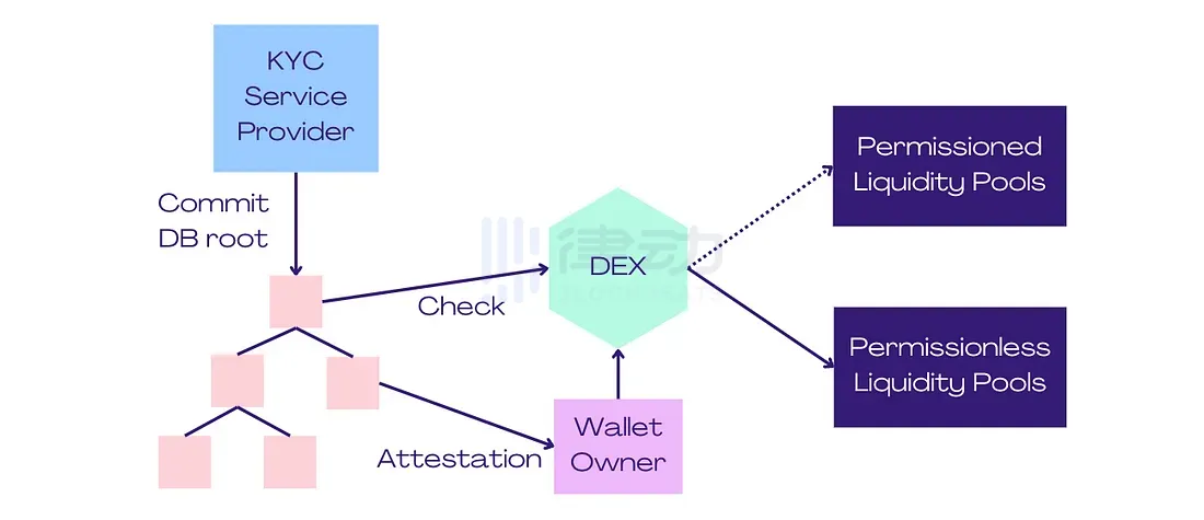 DEX 面临的挑战之一是确保遵守 KYC 和 AML(反洗钱)法规,同时维护用户隐私。Lumina 通过提供许可的流动性池来解决这一挑战,该流动性池利用 ZK 证明来强制访问。这使得流动性池创建者和用户能够确保遵守 KYC 和 AML 法规,同时维护用户隐私。