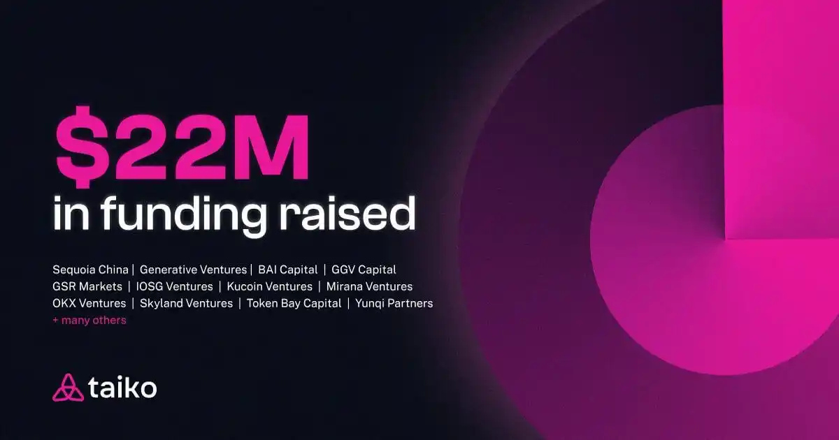 截止目前,Taiko 已通过两轮融资筹集 2200 万美元:第一笔是由红杉中国领投的 1000 万美元种子轮融资,于 2022 年第三季度完成;第二笔是今年由 Generative Ventures 领投的 1200 万美元 Pre-A 轮融资。