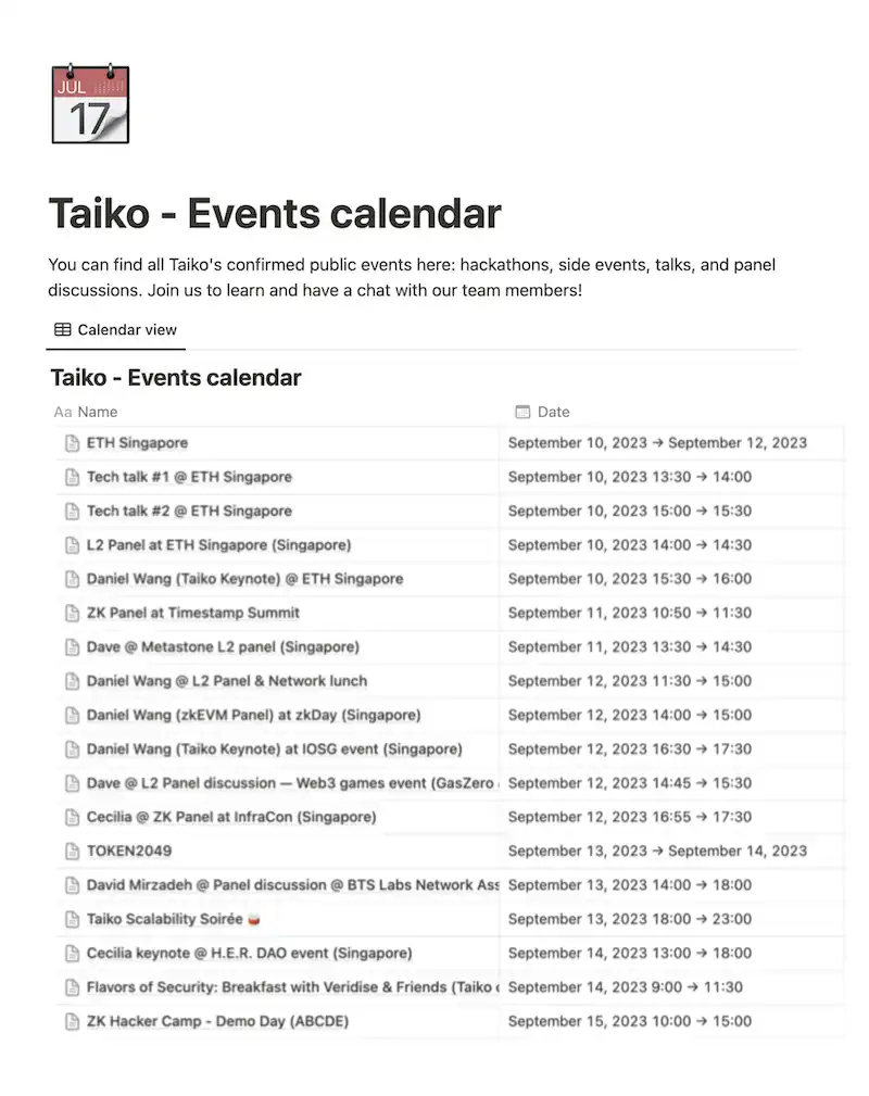 (Taiko 官方公开活动日历链接:https://taiko.xyz/events)