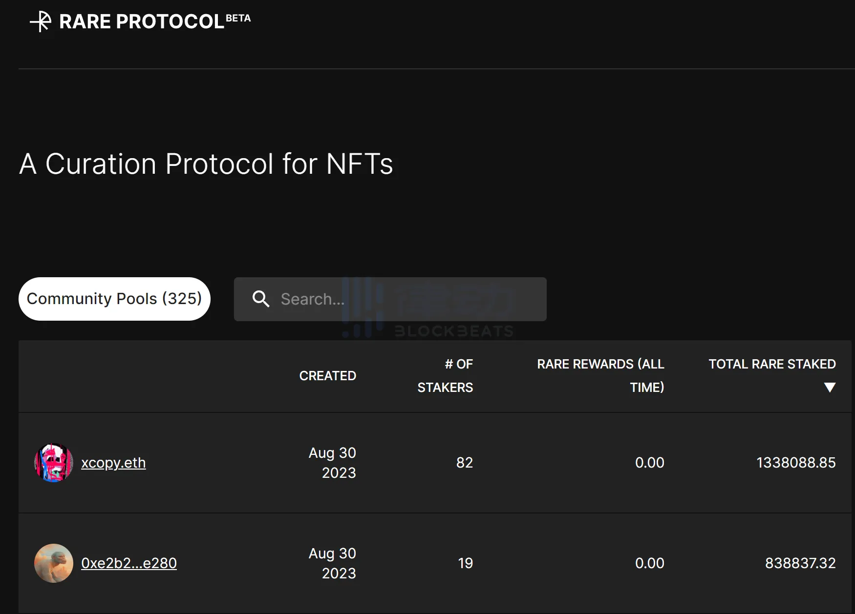 如果一个创作者获得了大量的 $RARE 质押,在质押池概览页面上自然就会位居前列而受到更多的关注从而带动销售。更多、更大额的销售给质押者带来更多的分红,又接着吸引更多的质押者... 这是「众人拾柴火焰高」般的间接性策展方式。