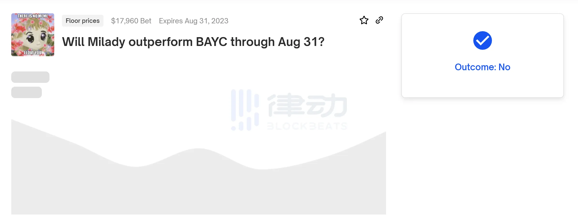 最后要提的是上周的「NFT 新鲜事」中提到的 Milady 与 BAYC 的「8 月对决」。BAYC 笑到了最后,我猜错了,不知道屏幕前的您有没有猜对?
