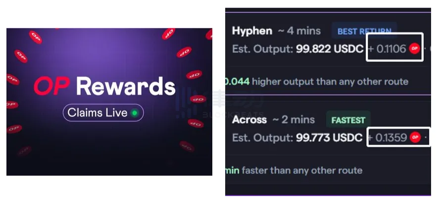 奖励的计算公式为佣金额=90% 过桥费+美元源 gas 费(以当日 OP 价格为准),其中过桥费用 = 源金额(USD)- 目标金额(USD),每笔交易可获得的 OP 上限为 20 个,获得的奖励会在 Bungee 上显示。